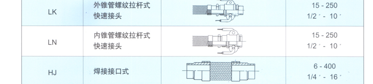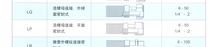 金属软管接头形式一览表